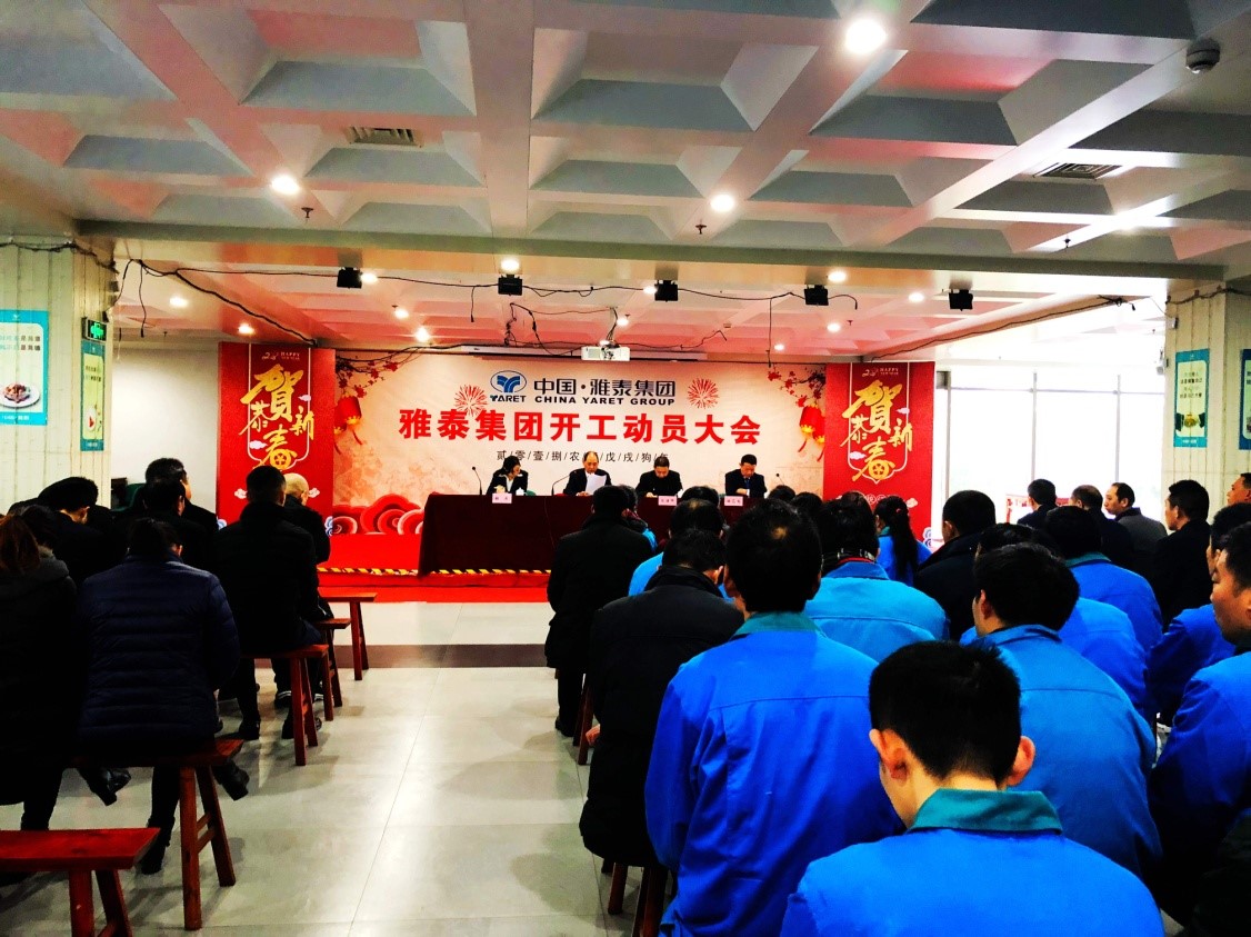 2018年2月25日上午8:30,雅泰集團(tuán)在公司食堂隆重舉行開工動員大會,集團(tuán)公司總裁班子成員、各部門、各車間員工共計500多人參加了動員大會。